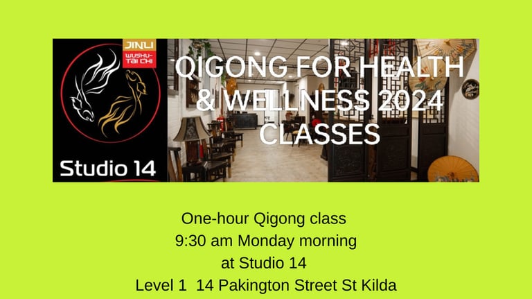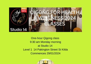 Dedicated Qigong class Mondays mornings at Studio 14 St Kilda